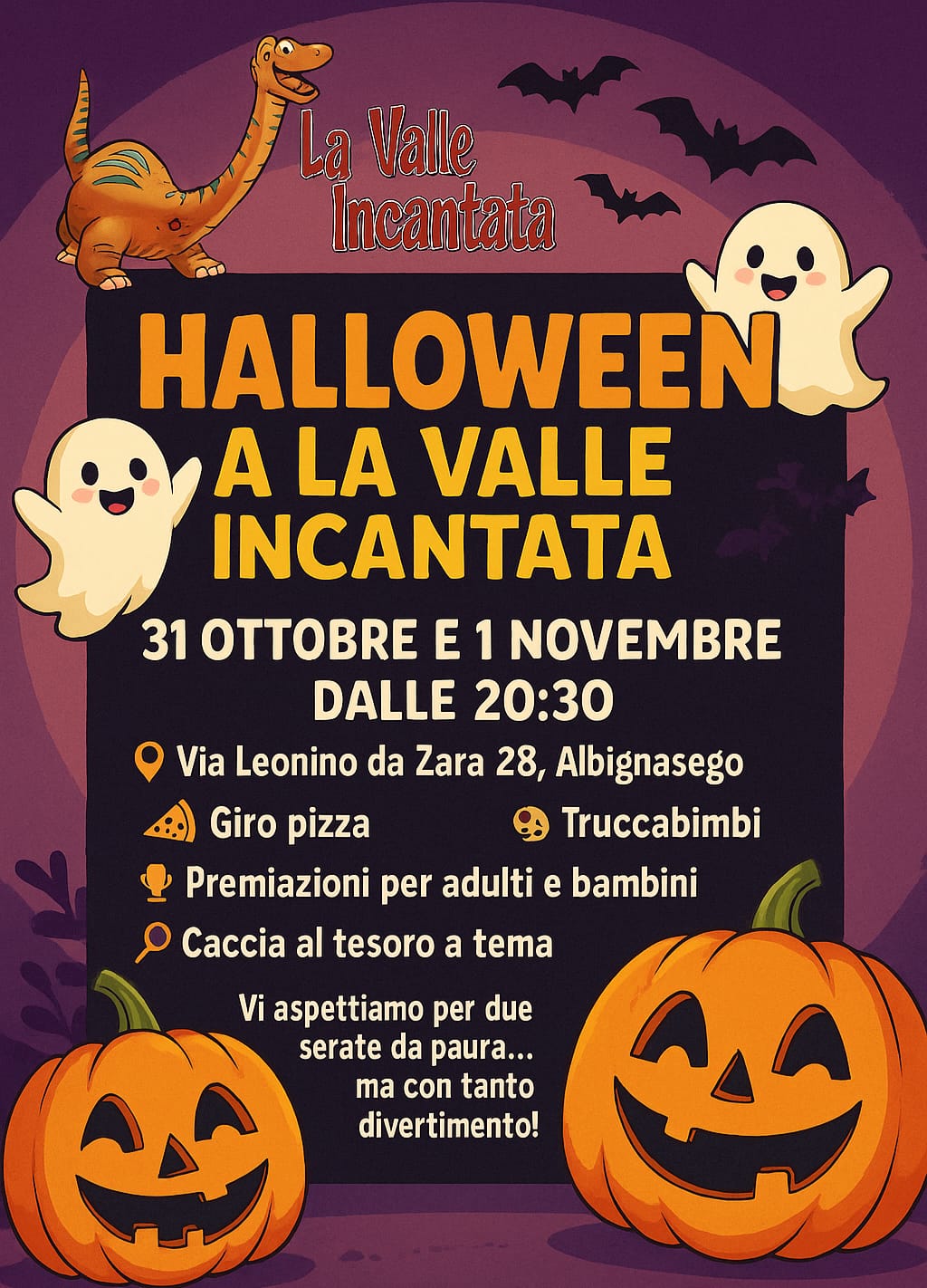Festa di halloween per bambini a Padova LA VALLE INCANTATA di Albignasego vi aspetta per festeggiare insieme una festa mostruosa !🕷️🕸️ Venerdì 31 Ottobre e Sabato 1 Novembre dalle ore 20,30 con giro pizza, trucca bimbi e caccia al tesoro…